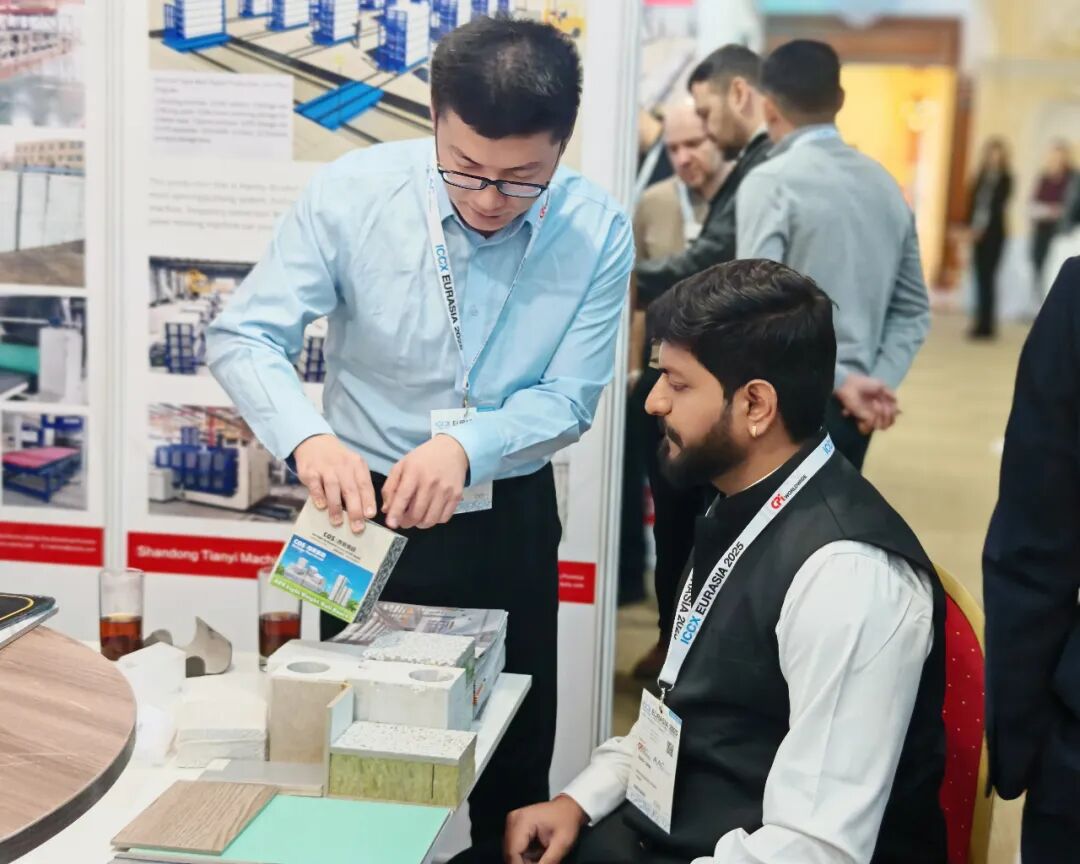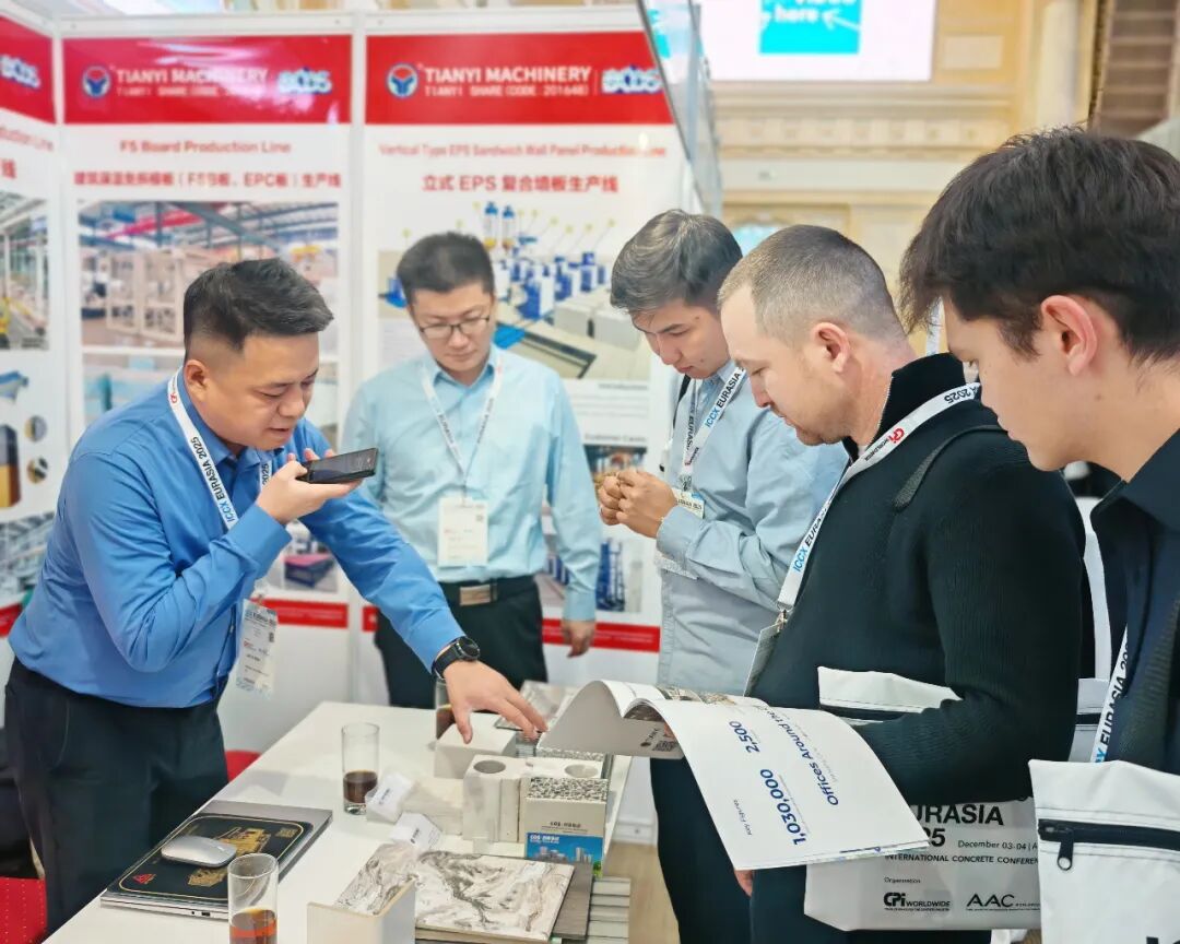 在裝配式建筑裝備方面,天意集團展示了PC生產(chǎn)線、墻板裝備和保溫裝飾一體板生產(chǎn)線。PC生產(chǎn)線自動化流程設計,減少人工依賴,契合當?shù)貏趧恿寄芩讲灰坏默F(xiàn)狀,有助于提升施工穩(wěn)定性;墻板裝備實現(xiàn)工業(yè)廢渣再利用,降低建材成本,符合環(huán)保政策要求;保溫裝飾一體板生產(chǎn)線可生產(chǎn)集多種功能于一體的新型墻體材料,采用模塊化設計,能根據(jù)客戶需求靈活配置不同飾面工藝,滿足中亞地區(qū)多樣化建筑風格需求。